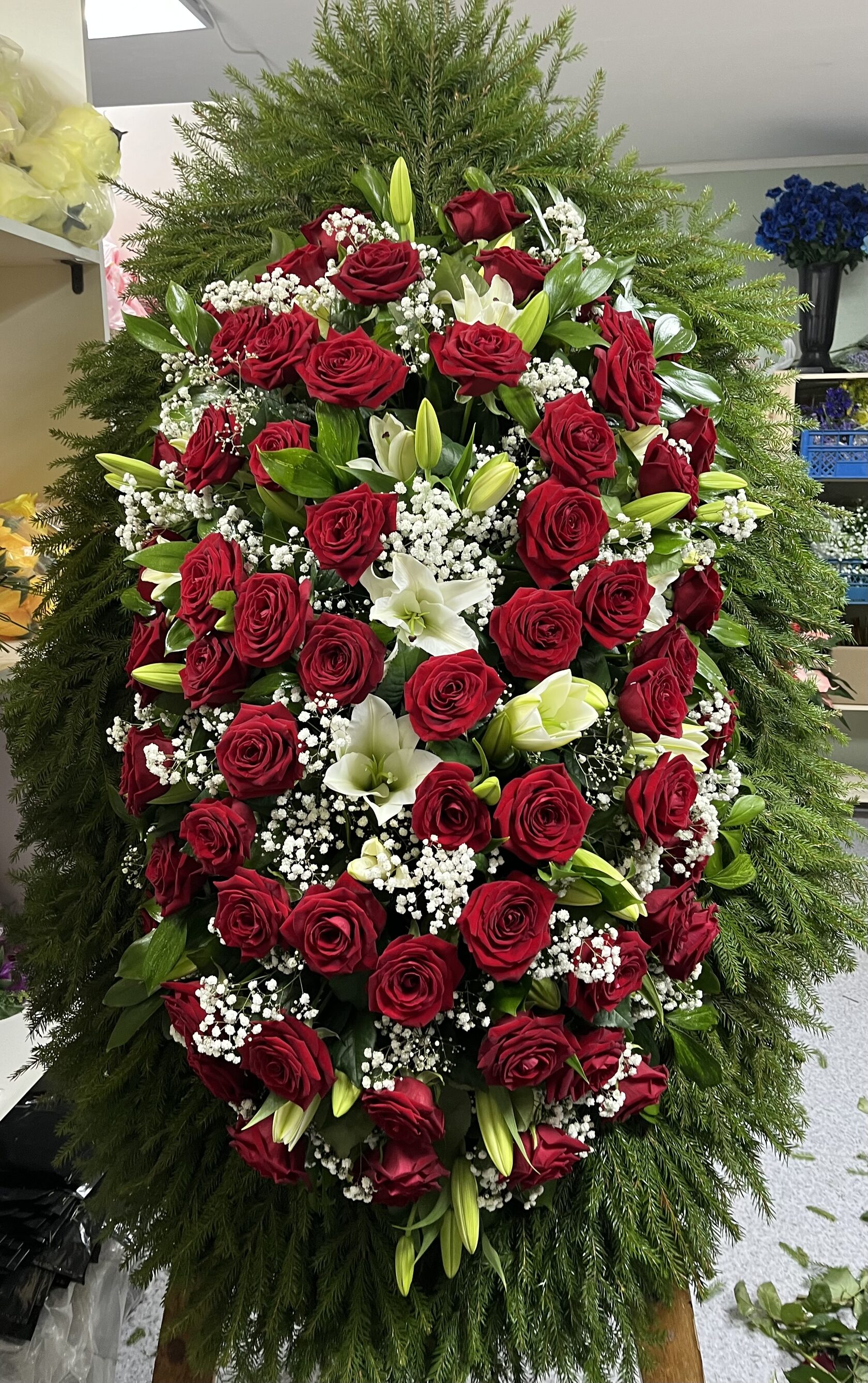 Траурные венки из живых цветов являются неизменным атрибутом похорон не только за рубежом, но и в России. Зачастую родственники усопшего отдают предпочтение именно живым цветам.